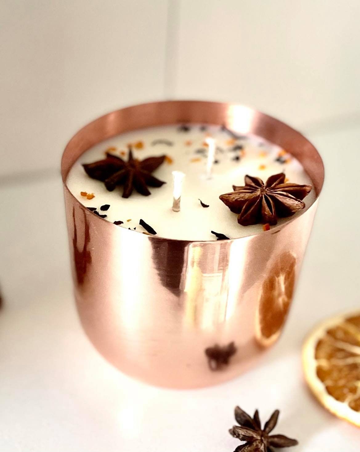 This beautifully designed Copper Jar filled with fragrant wax combines traditional elegance with modern aroma therapy.