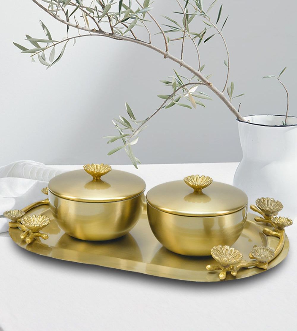 Metal Jar set with metal tray with handle, size:-3″ & 3.5″/ 7″