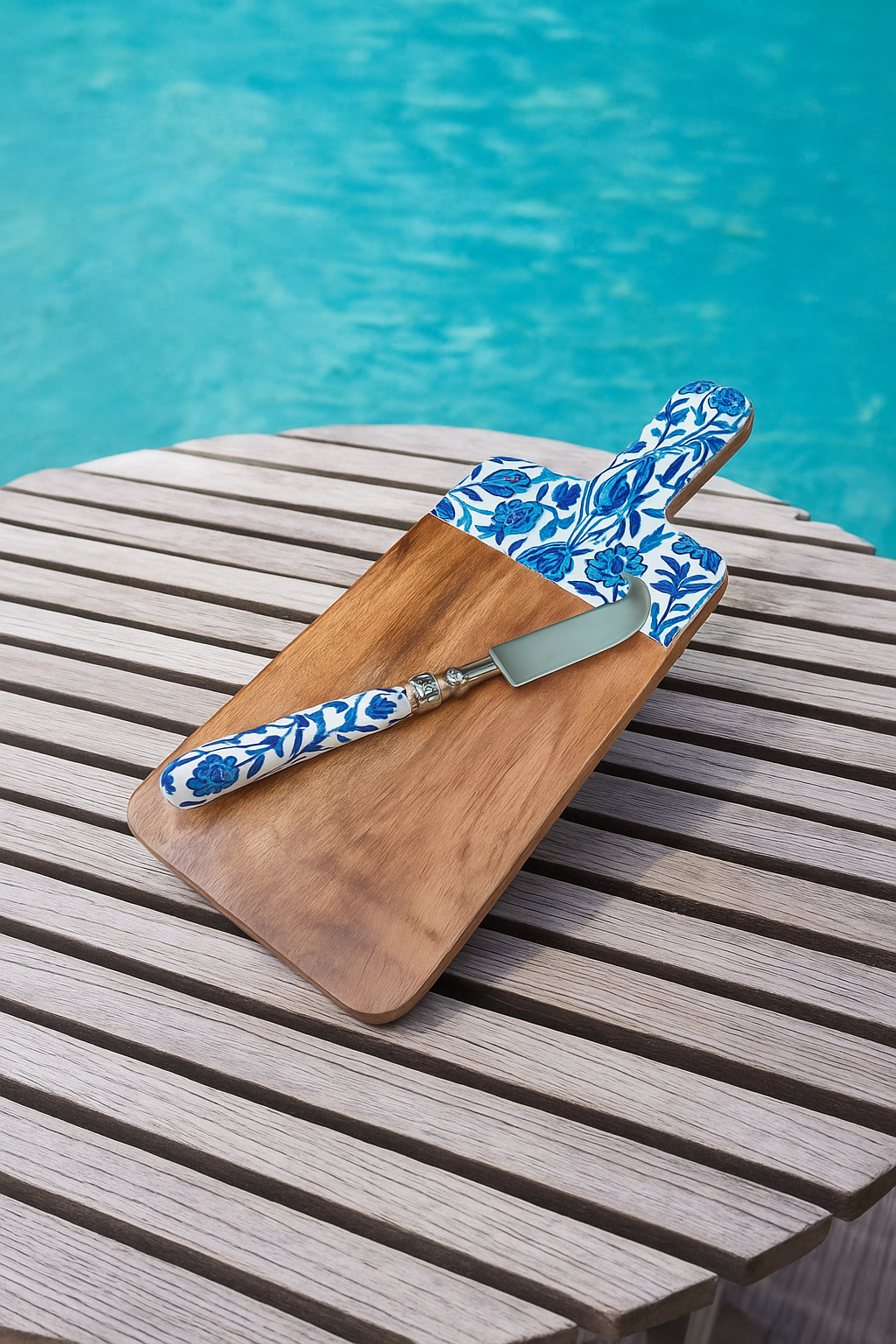 This stylish Wooden Platter with Cheese Knife is perfect for serving cheese, fruits, and appetizers with ease.