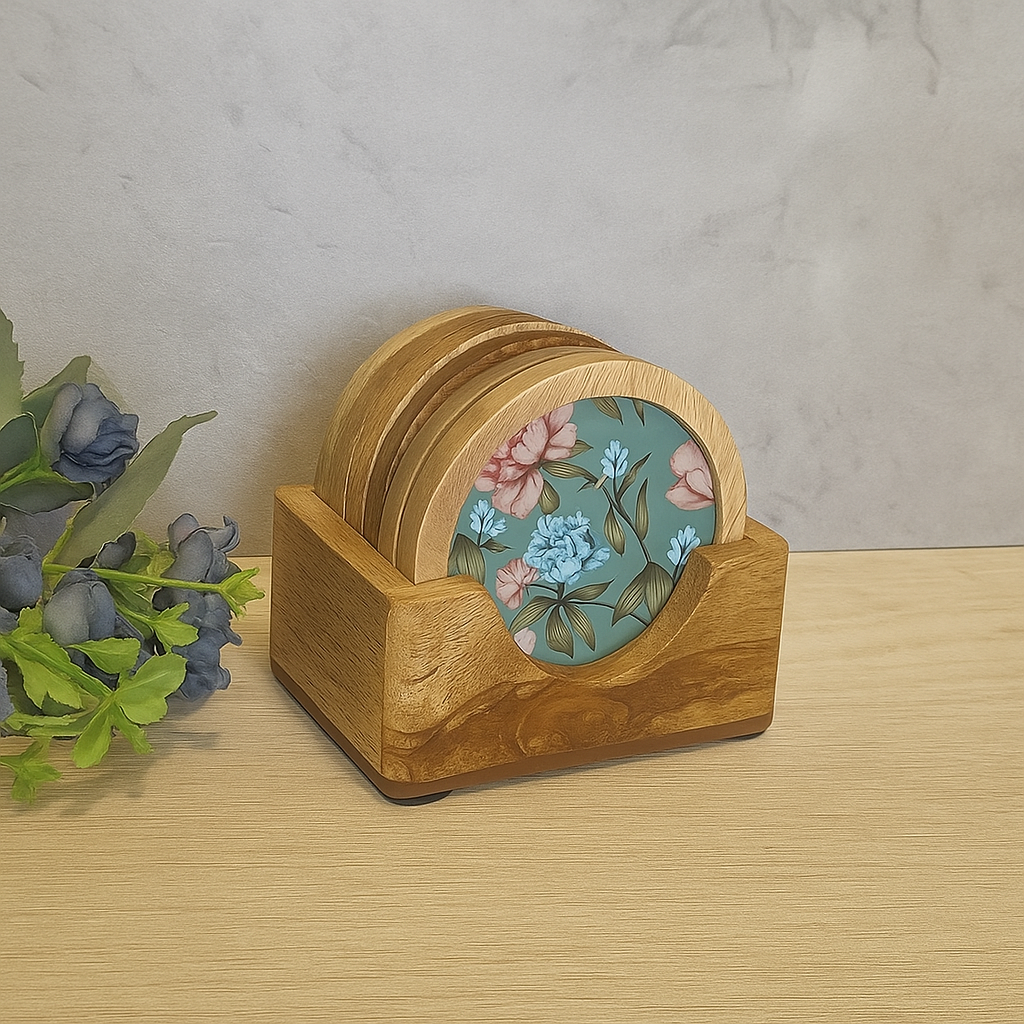These wooden round coasters feature a smooth finish and elegant design, perfect for protecting your surfaces.